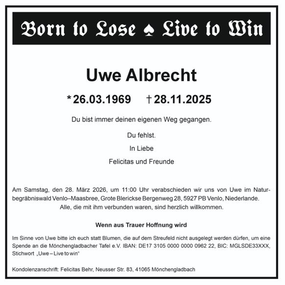 „Die österreichische Skatgemeinschaft trauert um Uwe Albrecht, der plötzlich und viel zu früh aus unserer Mitte gerissen wurde.“